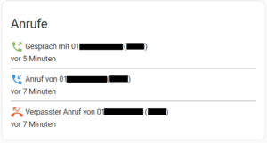 Allgemeine Info, falls das Anzeigen der Anrufe im Dashboard nicht geht: