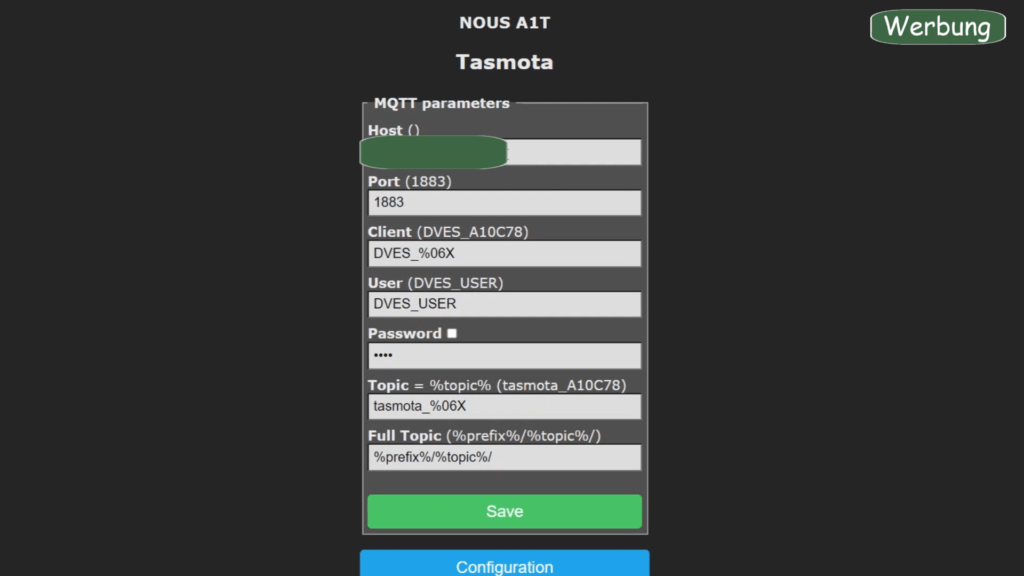 Nun sind noch die MQTT Einstellungen vorzunehmen, damit die Steckdose unter Home Assistant erkannt wird. Die Einrichtung des MQTT Broker habe ich in diesem Beitrag erklärt.