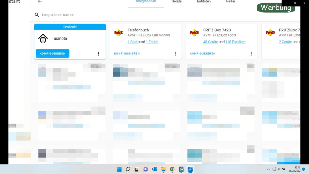 Über Konfigurieren wird die Integration eingerichtet. Sollte die Integration nicht gefunden werden oder keine Daten an Home Assistant übermittelt werden, kann folgender Schritt die Lösung sein.