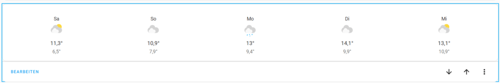 Bei der Wettervorhersage verwende ich die Karte Wettervorhersage.
